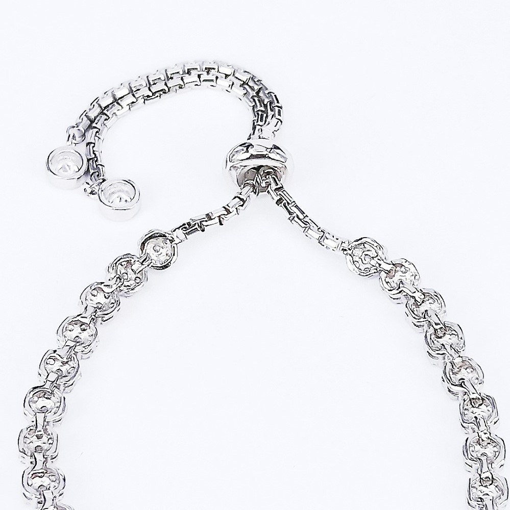 Product Description: Silver Bracelet with adjustable constrictor set with Cubic Zirconia and electroplated with Rhodium.