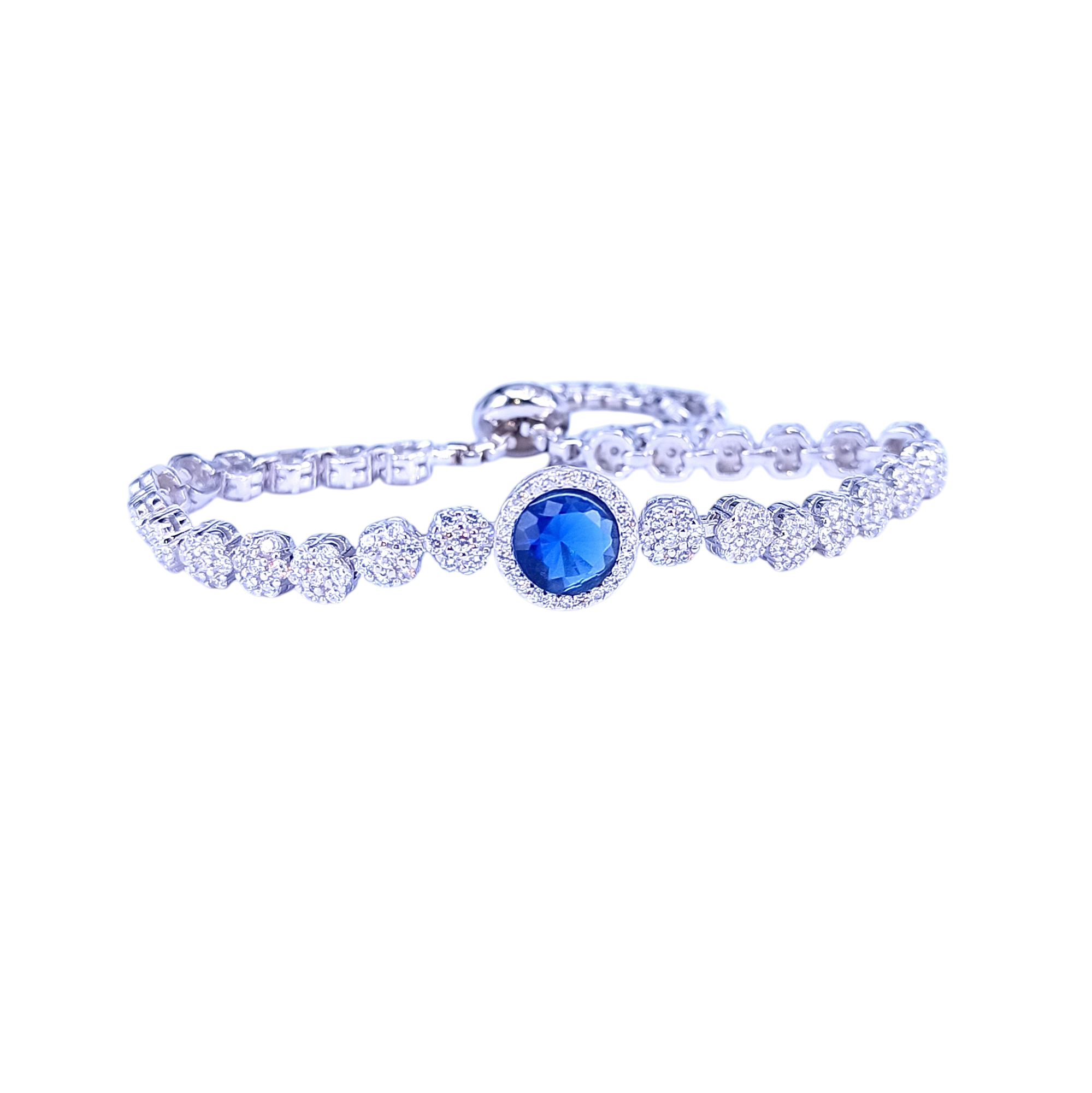 BRC00235 – Simulated Sapphire Halo Bracelet With Adjustable