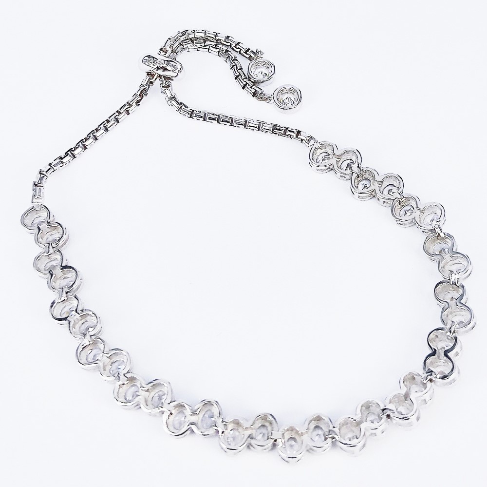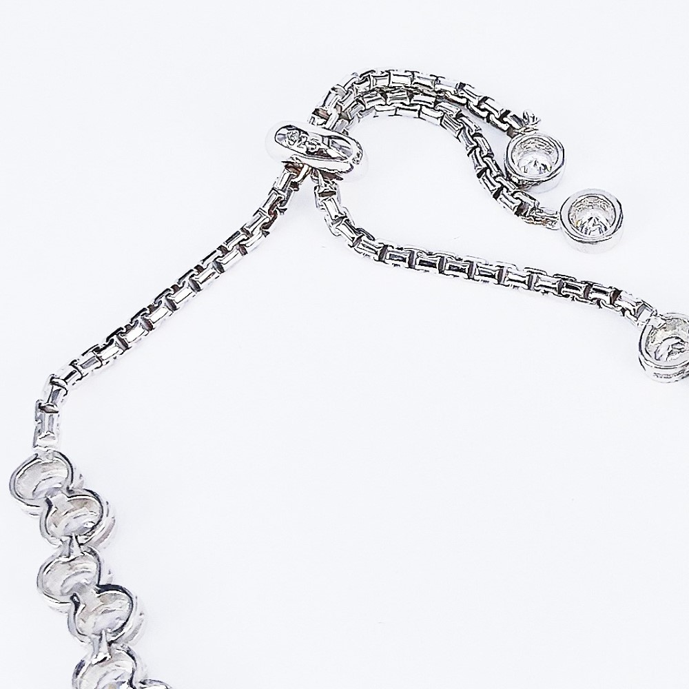 Product Description: Silver Bracelet with adjustable constrictor set with Cubic Zirconia and electroplated with Rhodium.