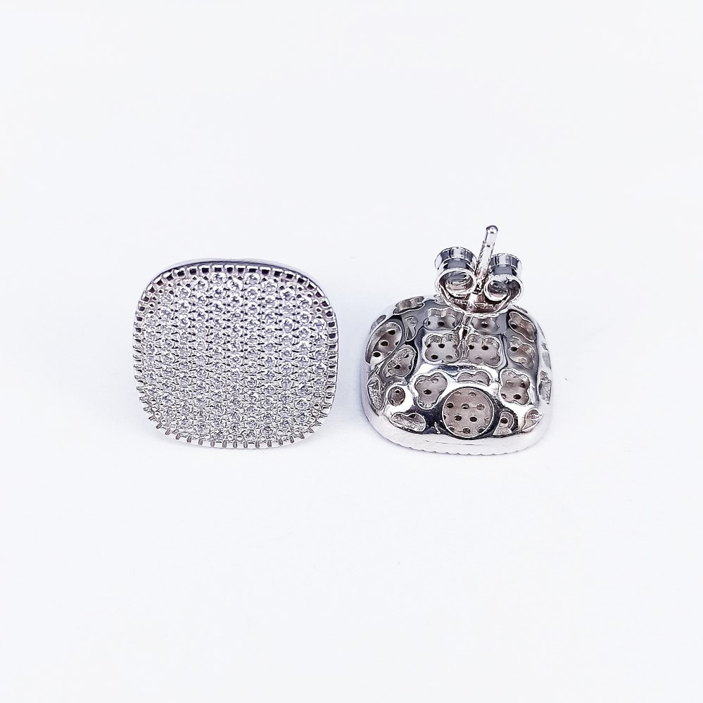 Cushion Shaped Micro Pavé Set Earrings With Double Gallery
