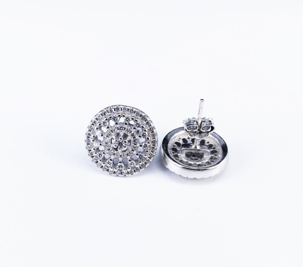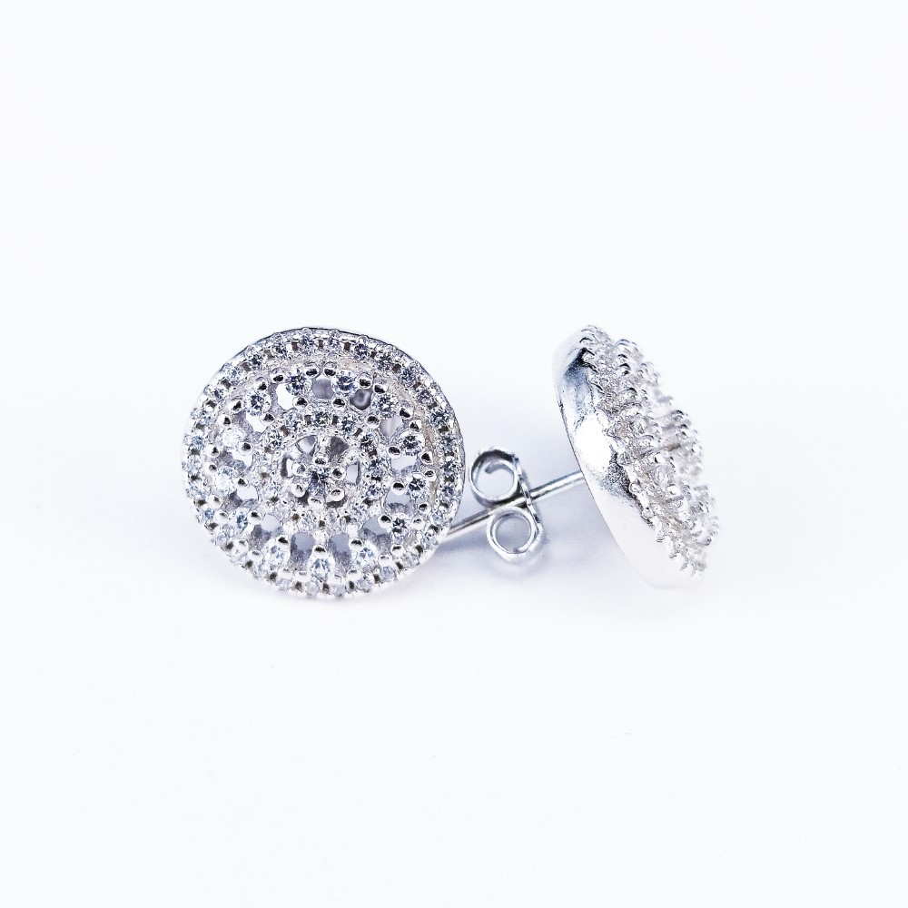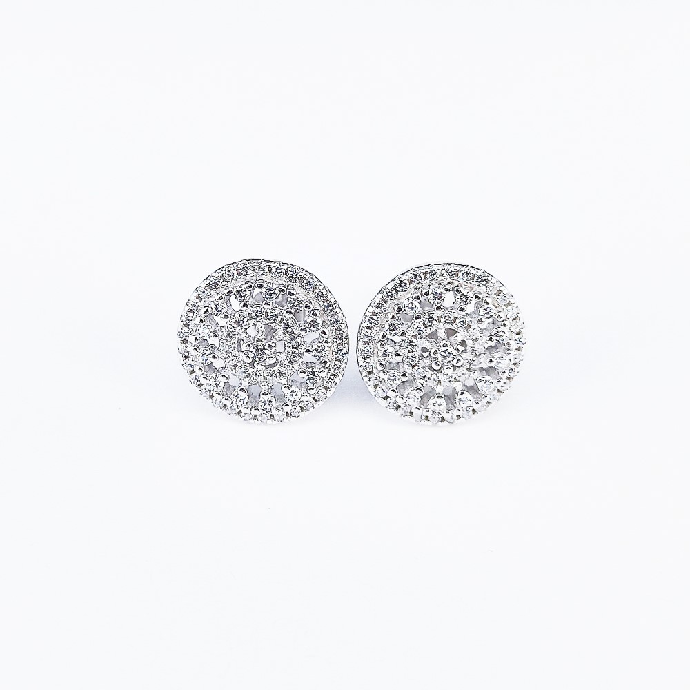 Round Halo Earrings Set with Cubic Zirconia in Pavé style. 925 Sterling Silver Guarantee. Rhodium Plated.