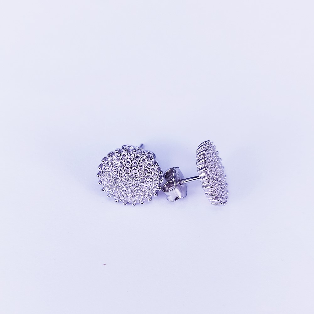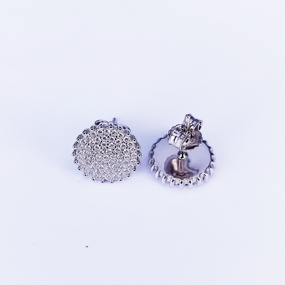 Classic Round cubic Zirconia set tops earrings manufactured in Genuine Sterling Silver and Rhodium Plated featuring Pavé setting style.