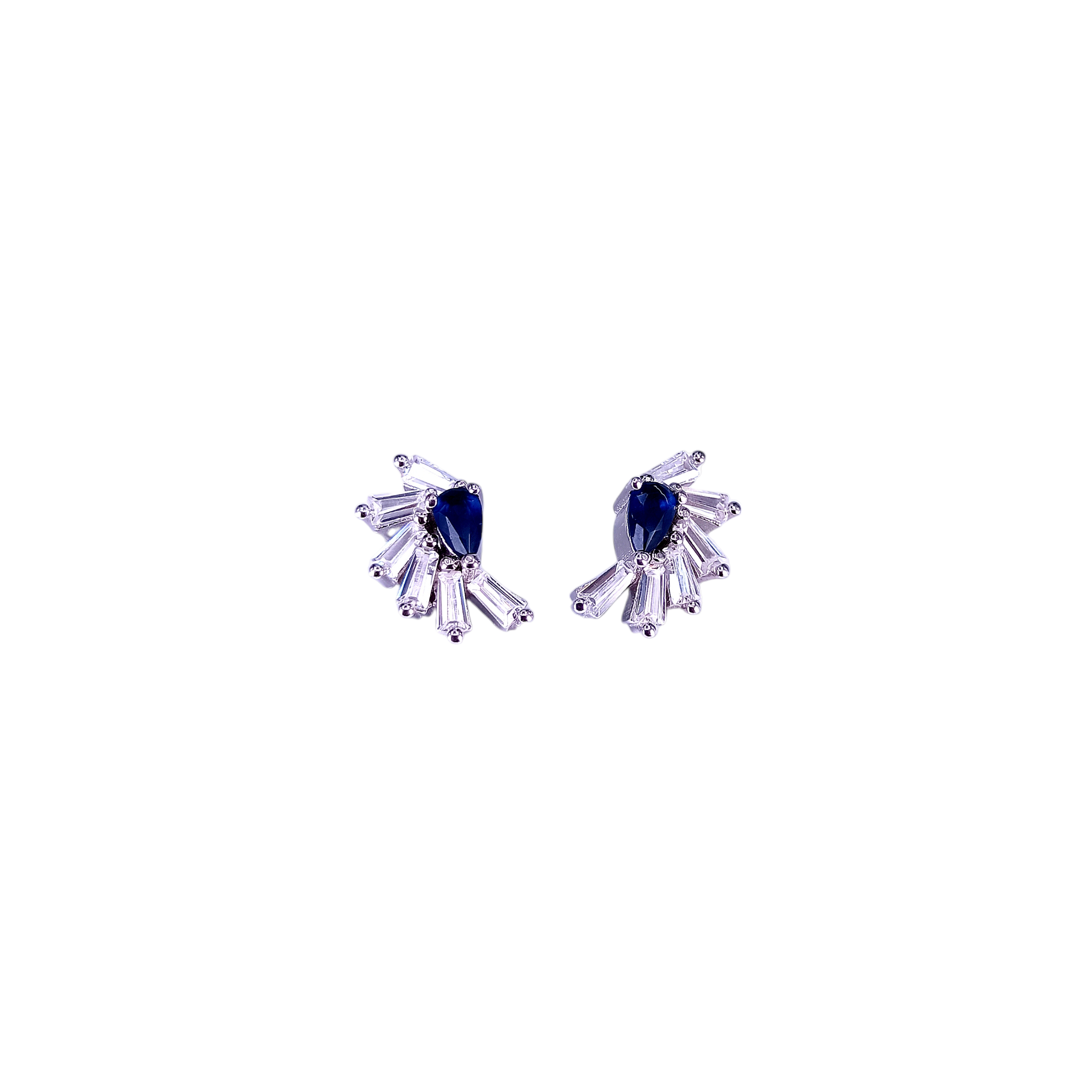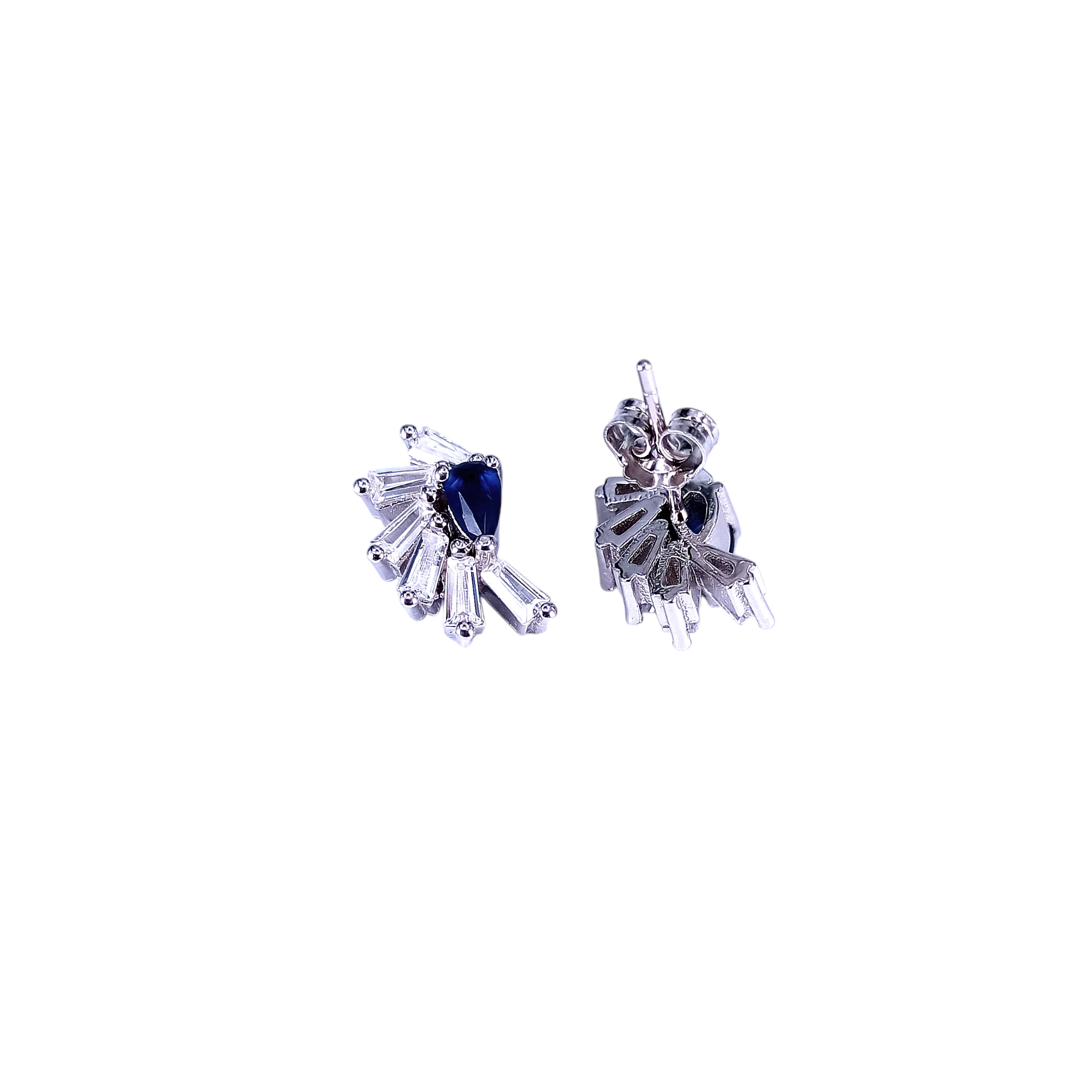 ERG00310-Elegant Blue Pear & white baguette Earrings