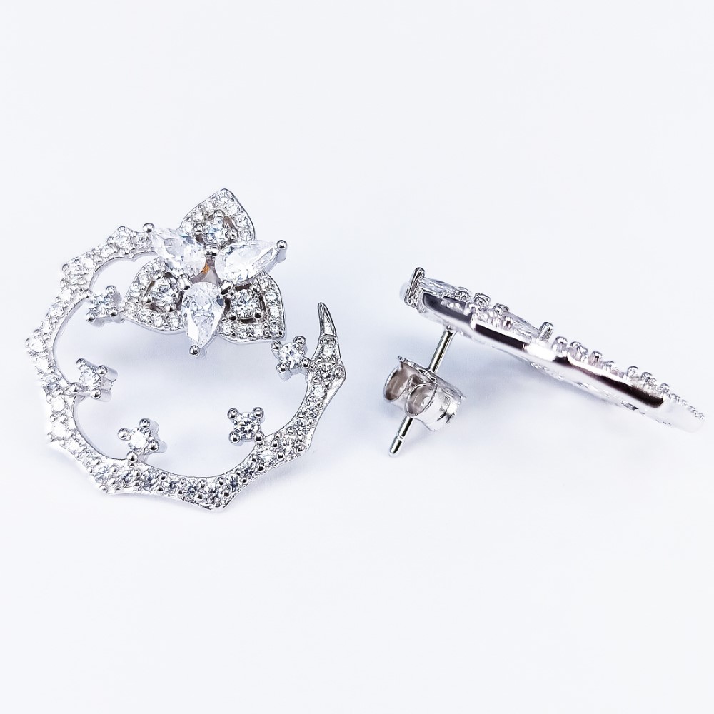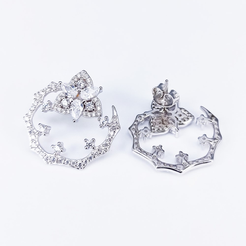 Fancy Design Earrings Set With Pear & Round Shape Zirconia