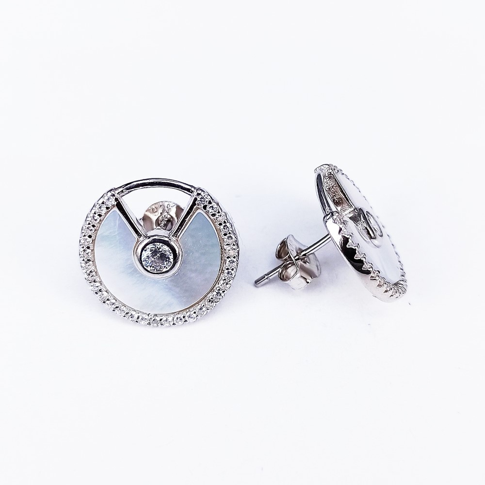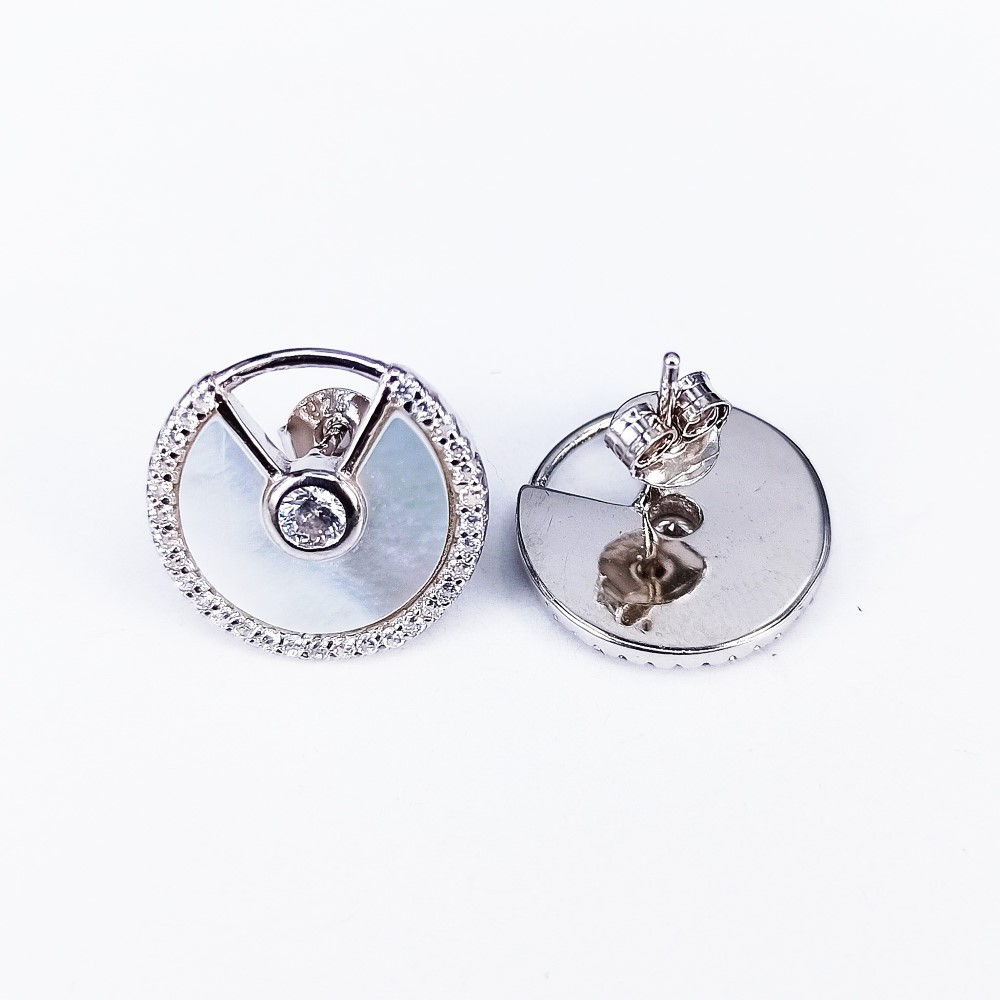 ERG00243 Mother of Pearl Round Tops Set with Zirconia