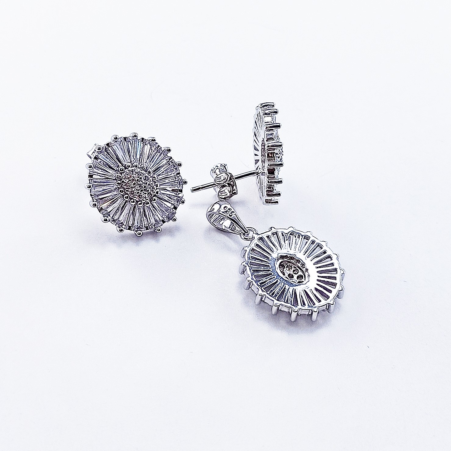 Oval Shaped Earring & Pendant Set With Round & Baguette Zirconia