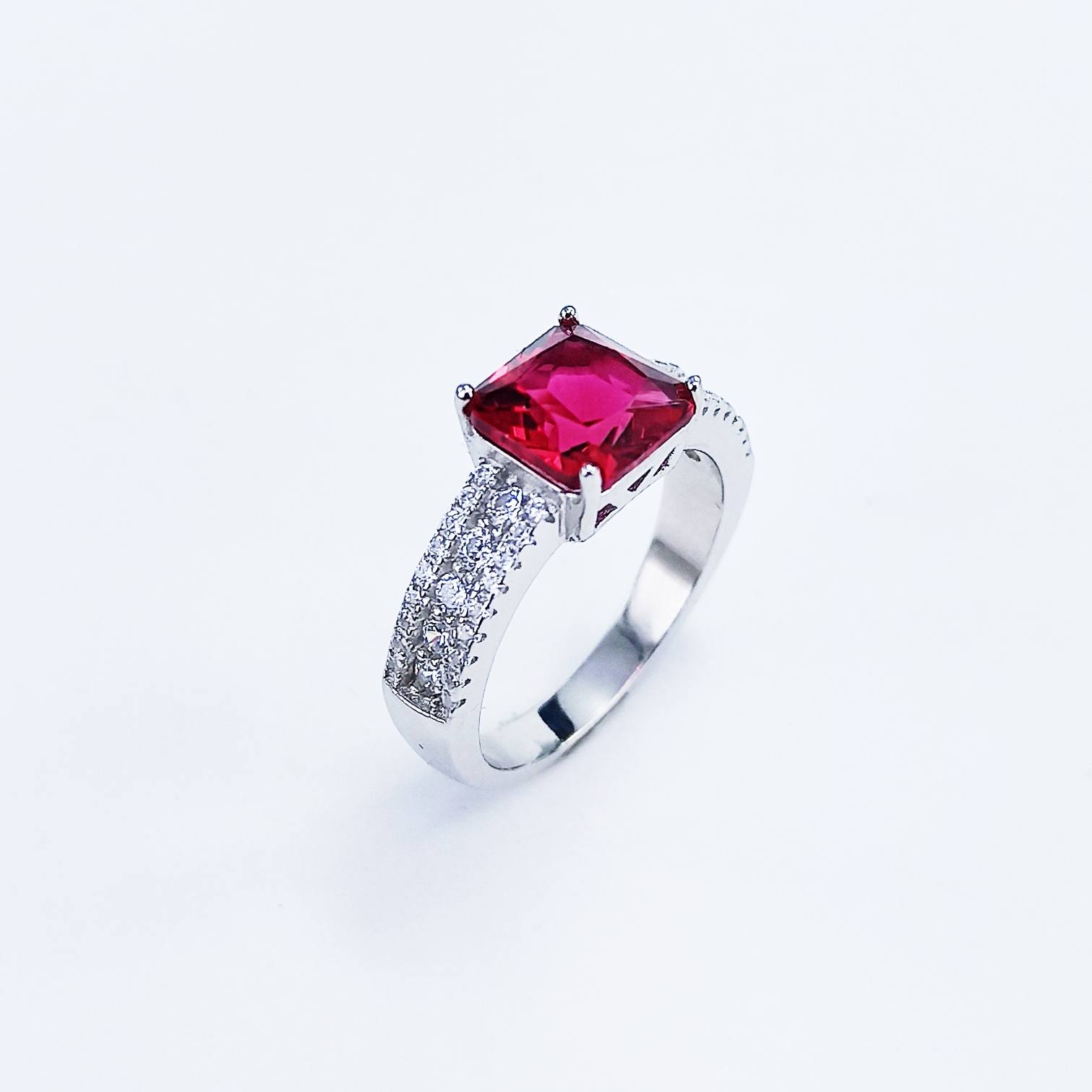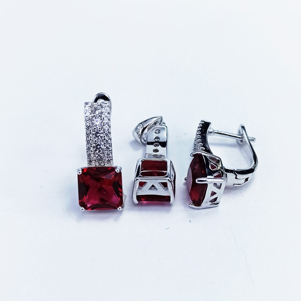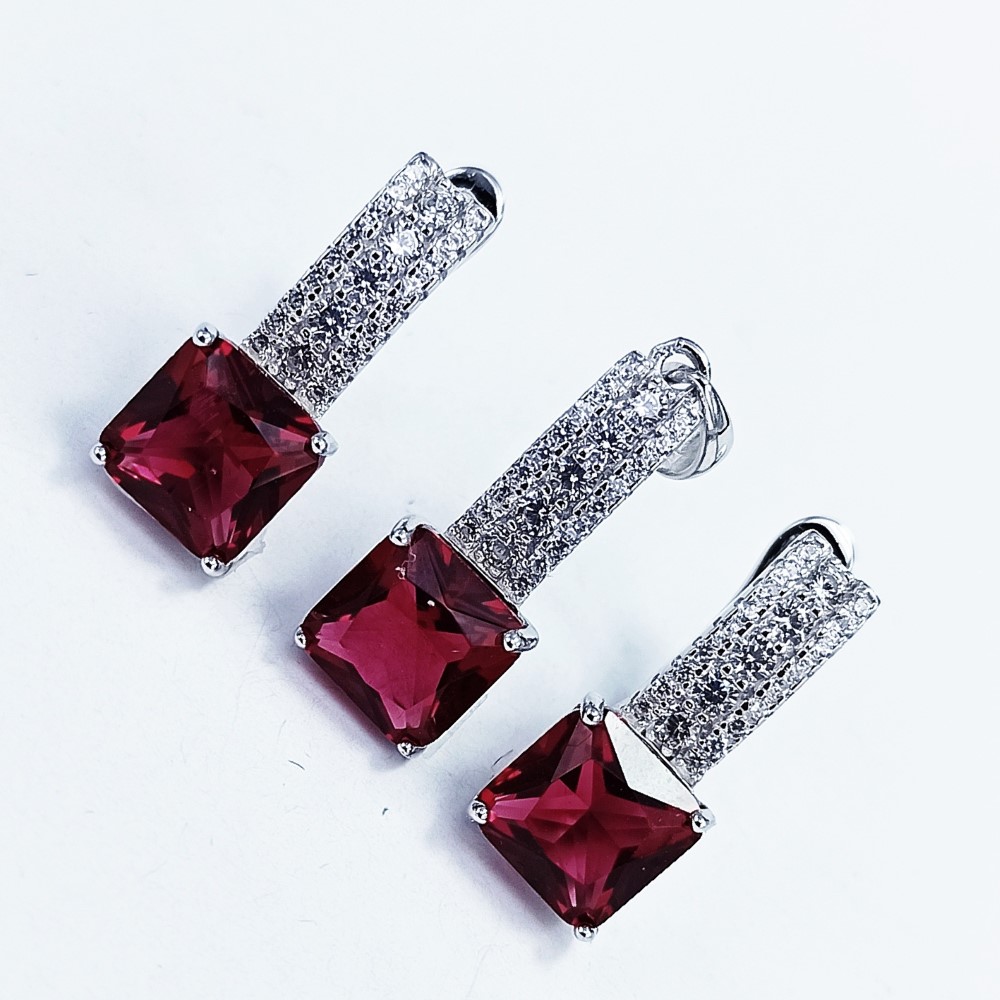 PST00071 – Red Stone Pendant Set With Ring set with cubic zirconia in a channel setting style. Genuine 925 Sterling Silver. Electroplated with Rhodium.