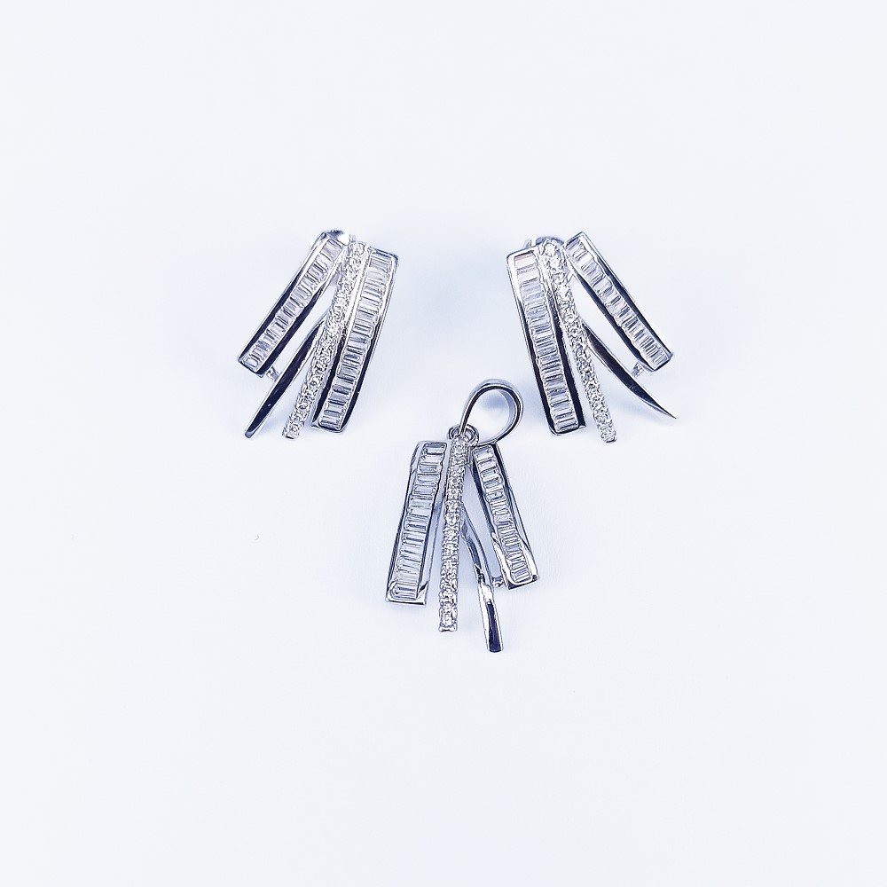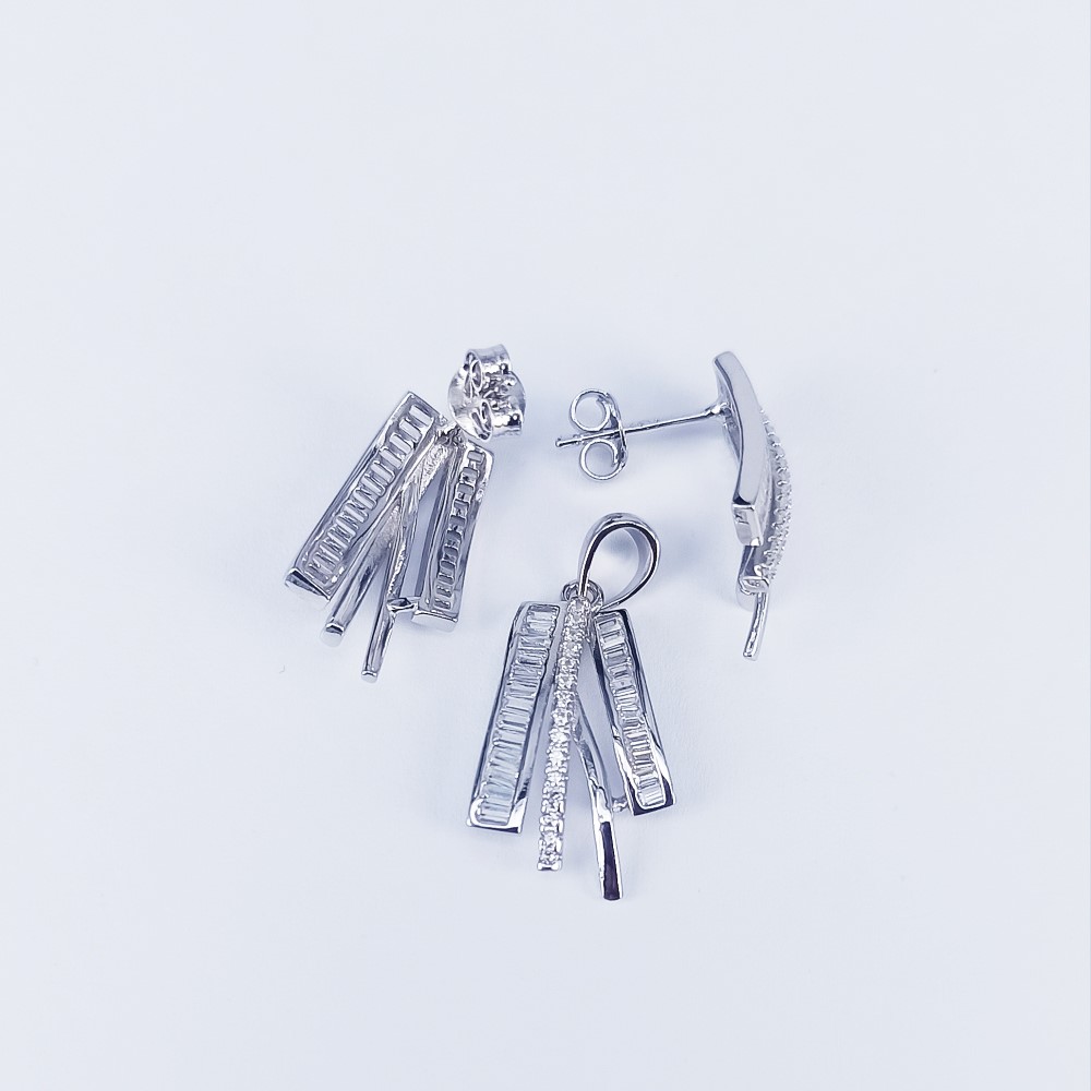 Channel Channel Set Pendant & Earrings Set. Rhodium Plated. Genuine Silver.