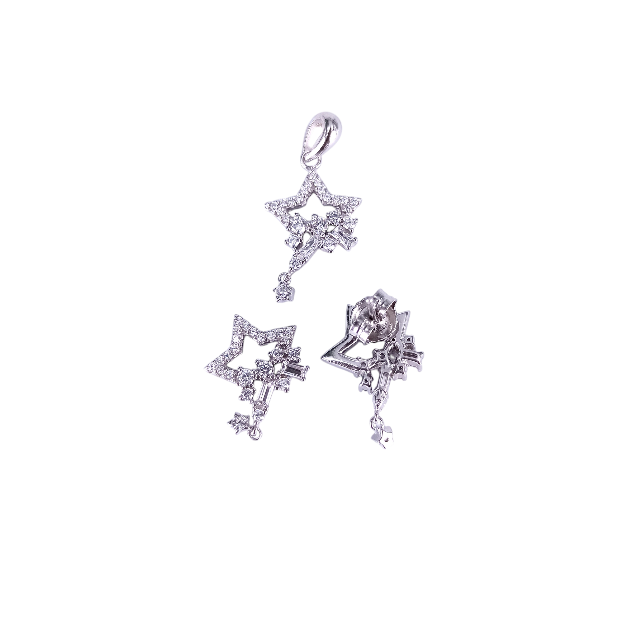 PST00103 – Unique Star Shape Pendant Set With Round & Baguette Stone