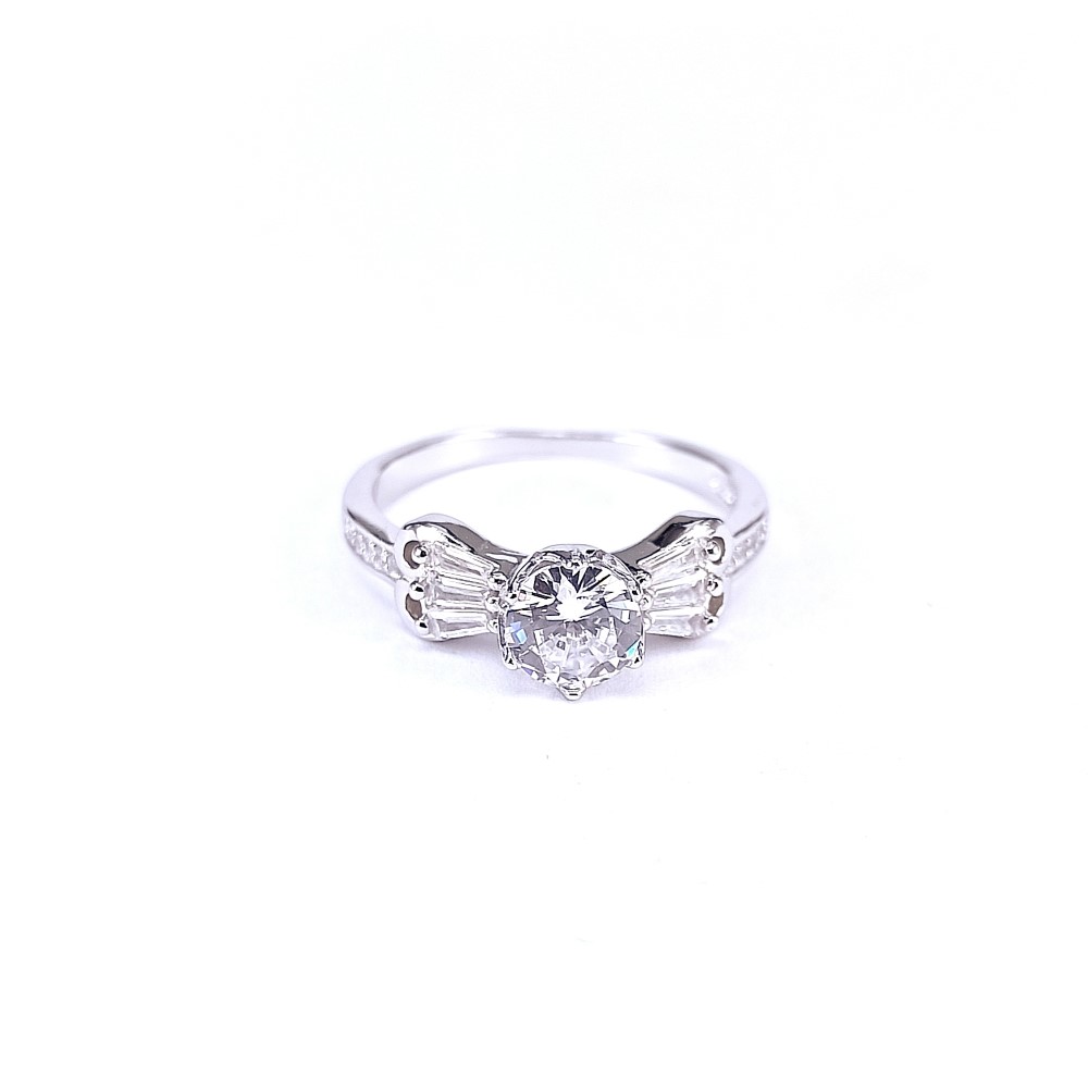 RNG00266-Delicate Baguette Cut with Small Round CZ Ring