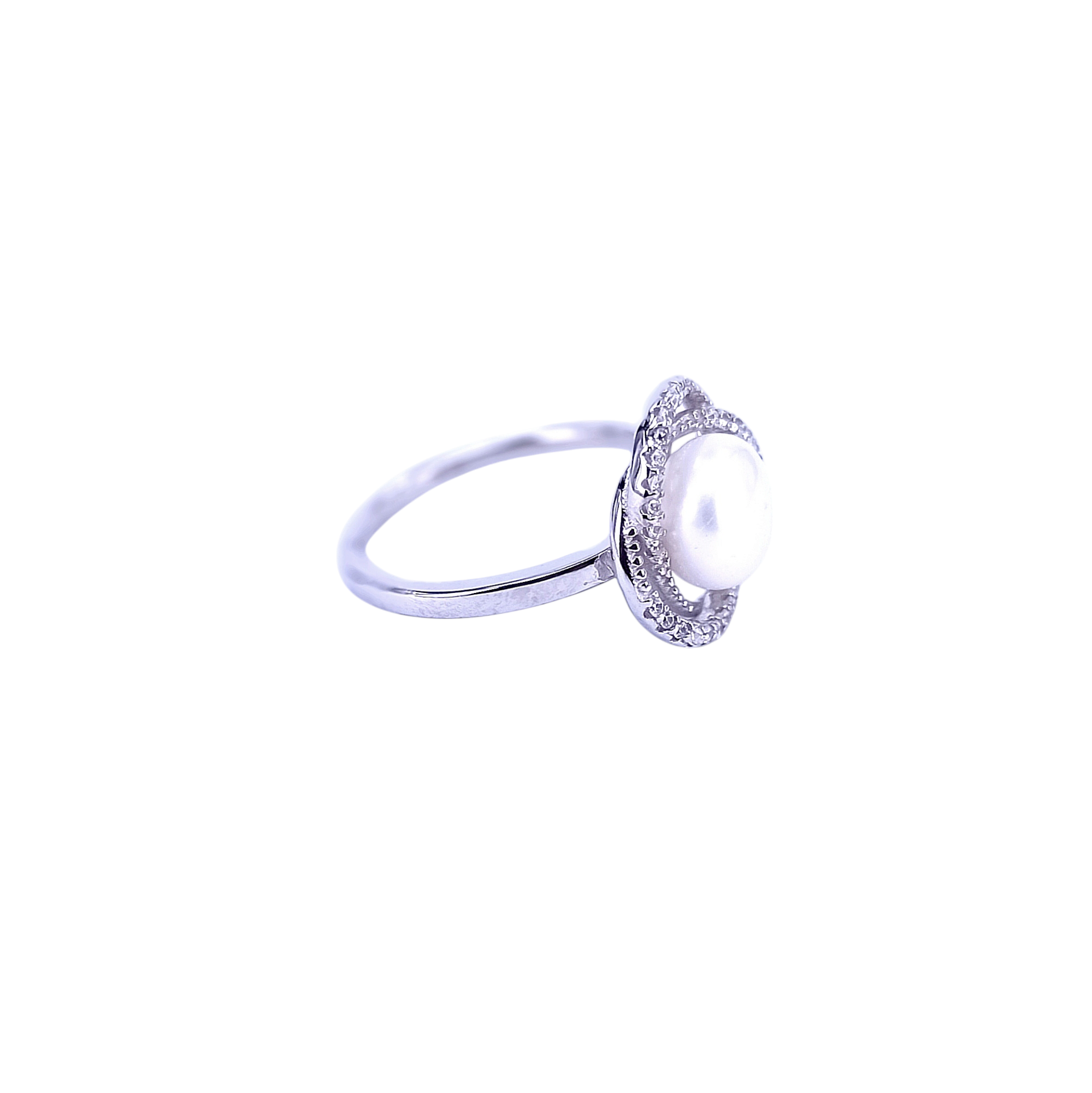 RNG00276-Double Halo Crossover Fresh Water Pearl Ring