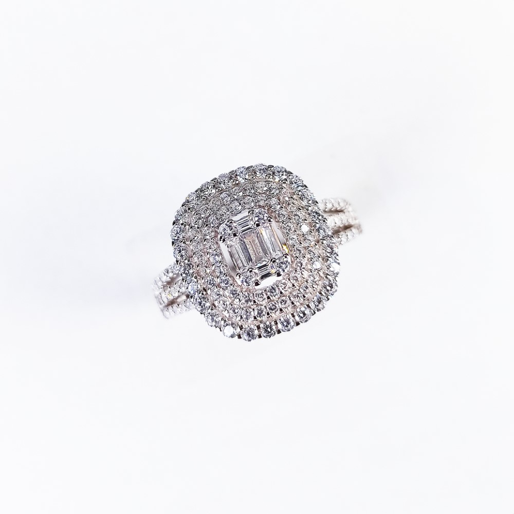 Triple Cushion Halo Ring With Round & Baguettes Zirconia